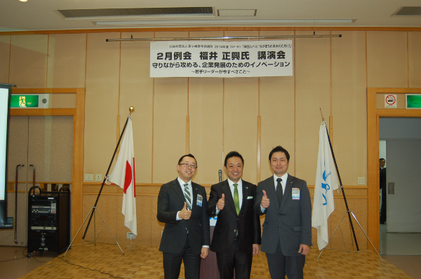 大企業の重役でありながら日本青年会議所の2011年度会頭を務められ、東日本大震災という未曾有の危機で青年が果たすべき役割を再認識したという福井氏の熱い思いを存分に伝えていただけた、素晴らしい講演会となりました。